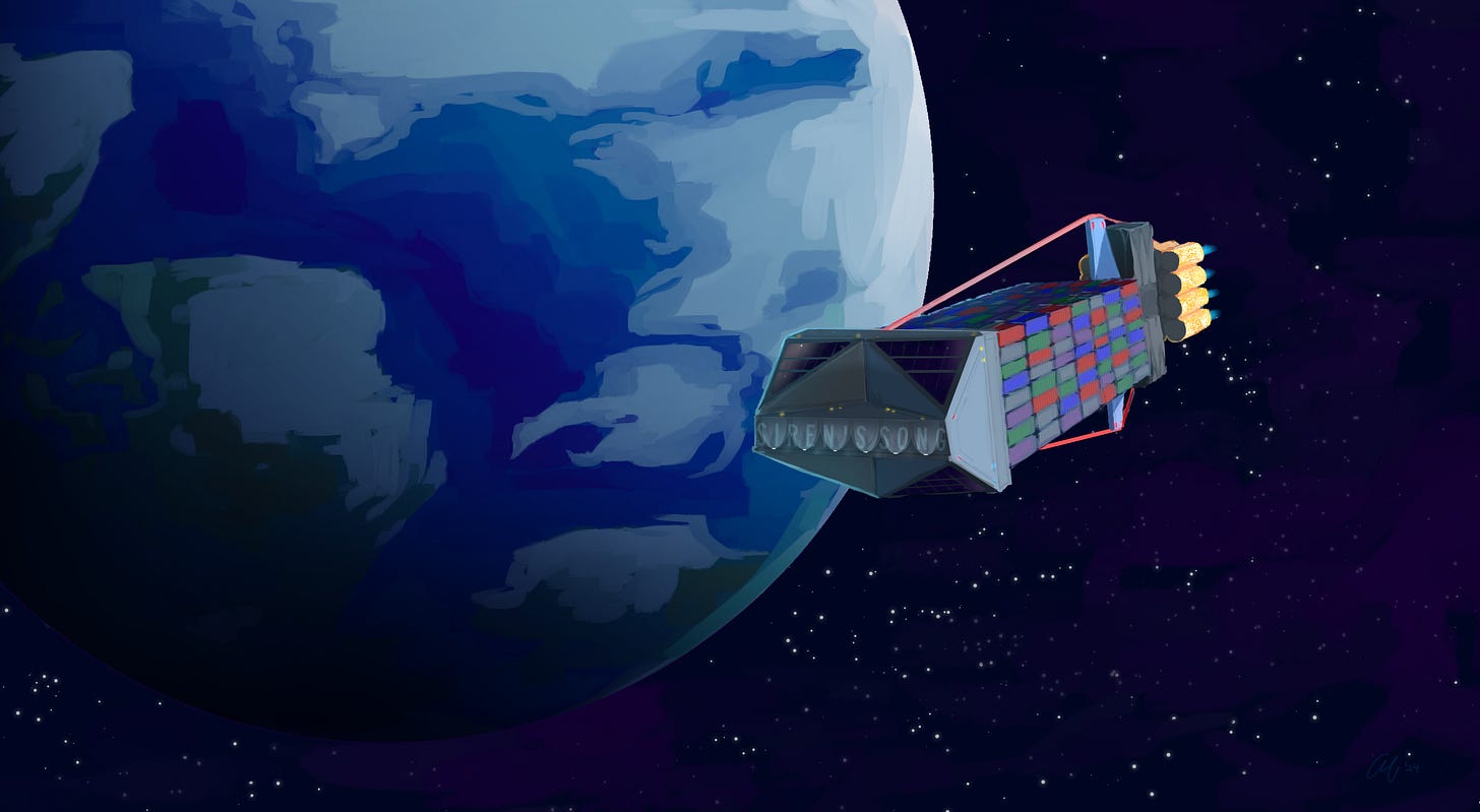 The Siren’s Song was a storied ship. She had been christened Terra Nova, first owned by a UN company from Epsilon Indi, and now owned by a Minervan co-op. She was a Savannah-Class, a tried-and-true cargo hauler design that had been built by the yards at Alpha Centauri for almost a hundred years, which was itself a slightly tweaked version of an older design from Sol’s twenty-fourth century. The internal markets of the UN and FMR very rarely touched— at least, outside of Special Economic Zones like Calvados— but in the freight business, it really didn’t matter who you bought your ship from. They were all pretty much the same, and most of them were second-hand, if not third or fourth, and none of them were particularly luxurious. Siren’s Song was no exception.
